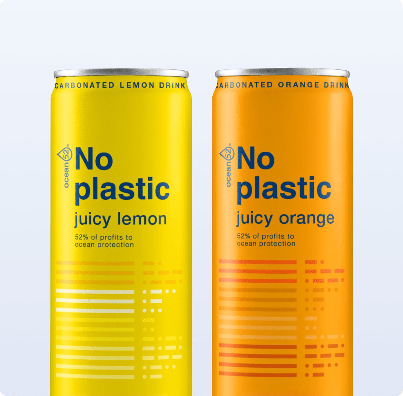 Lemon and Orange soft drinks with 10% fruit juice and a refreshing taste. Vegan certified recipe in an eternally recyclable aluminum can. Soft drinks that say no to plastic in the ocean.